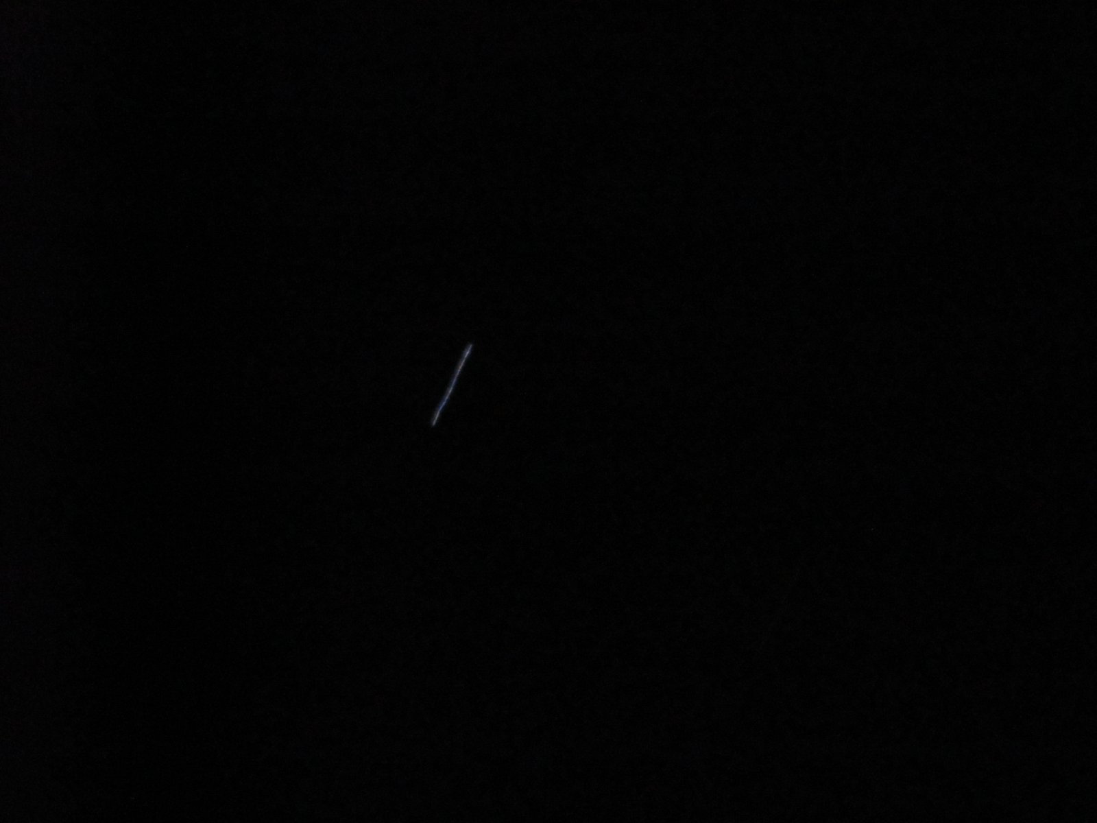 (MUFON) --Went out to fill wood stove on Feb23 2015 seen strange lights took pic with wife camera,the on feb 24,2015 went out to fill wood stove and seen two big white lights with blue center and took pics. I thought I seen a ufo it was really big. cylinder shape shape object horizontally white top and bottom blue center that pulsated and left like a trail sometimes .I was a little uneasy about seeing this. It was so cold I had to go in.