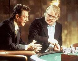 (AgoraPublishing.com) -- Owning Mahowny is based on a true story about a bank executive who committed the largest one man fraud in Canadian history. The movie was released in 2003 and is set in the time of 1980-1982 when the actual events occurred. This movie is based on the book "Stung: The Incredible Obsession of Brian Molony" by Gary Stephen Ross that tells the real story of Brian Molony which the character of Dan Mahowny is based upon. Dan Mahowny is a mild mannered bank executive with an addiction to gambling. His job gives him access to a 20 million account. When he encounters a losing streak he "borrows" from this account and eventually takes10.2 million dollars over an 18 month period to fuel his gambling addiction. Like most addicts Dan Mahowny is in denial. When confronted by his girl friend about his gambling, he tells "I don't have a gambling problem. I have a financial problem." What is even more disturbing is the way the greedy casino executives coax and encourage him to remain gambling. At one point the casino flies "the cage" from Atlantic City to Toronto to get a signature which would allow Mahowny money to gambling with. This took place in 1980 and a lot has changed but some of the tactics used by the casinos remain today. I originally purchased this movie because I enjoy watching to see how accurate casino scenes are portrayed in a movie. The gambling scenes were just a backdrop to the story of this pitiful man who starts the movie as a gambling addict and then spirals down even father in toe the depths of his addiction until he is caught. This is not a great movie with an entertaining story line but neither is