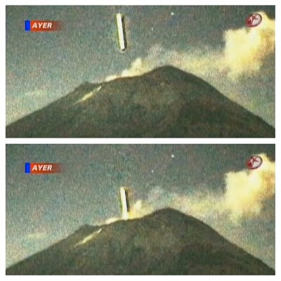 Recently Scott also posted additional video footage obtained from a Mexican news source as well as several photographs that show a cigar shaped cylindrical UFO that was around 200 metres in length. This craft-like object is seen to be entering the mouth of Volcano Popocatepetl.