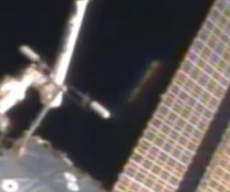 “Caught on live Internet cam, the UFO is stationary, which tells us it has matched speeds with the space station so that it can conduct is mission.â€