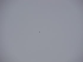 We got back to the same spot, and still see the object. But now it was spinning in a slow counter-clockwise rotation, traveling at a Northeast to Northwest direction, about the same speed as a typical airplane. I would have to guess the altitude of the object to be around 1500 or so feet off the ground. I lined up a clear shot of the object with my camera, and as I got to take the picture, the object moves out of screen. I line up the shot again, and the object darts out of the shot again. I spend about 10 minutes trying to capture the object in a picture, but it almost appears to "evade" being photographed