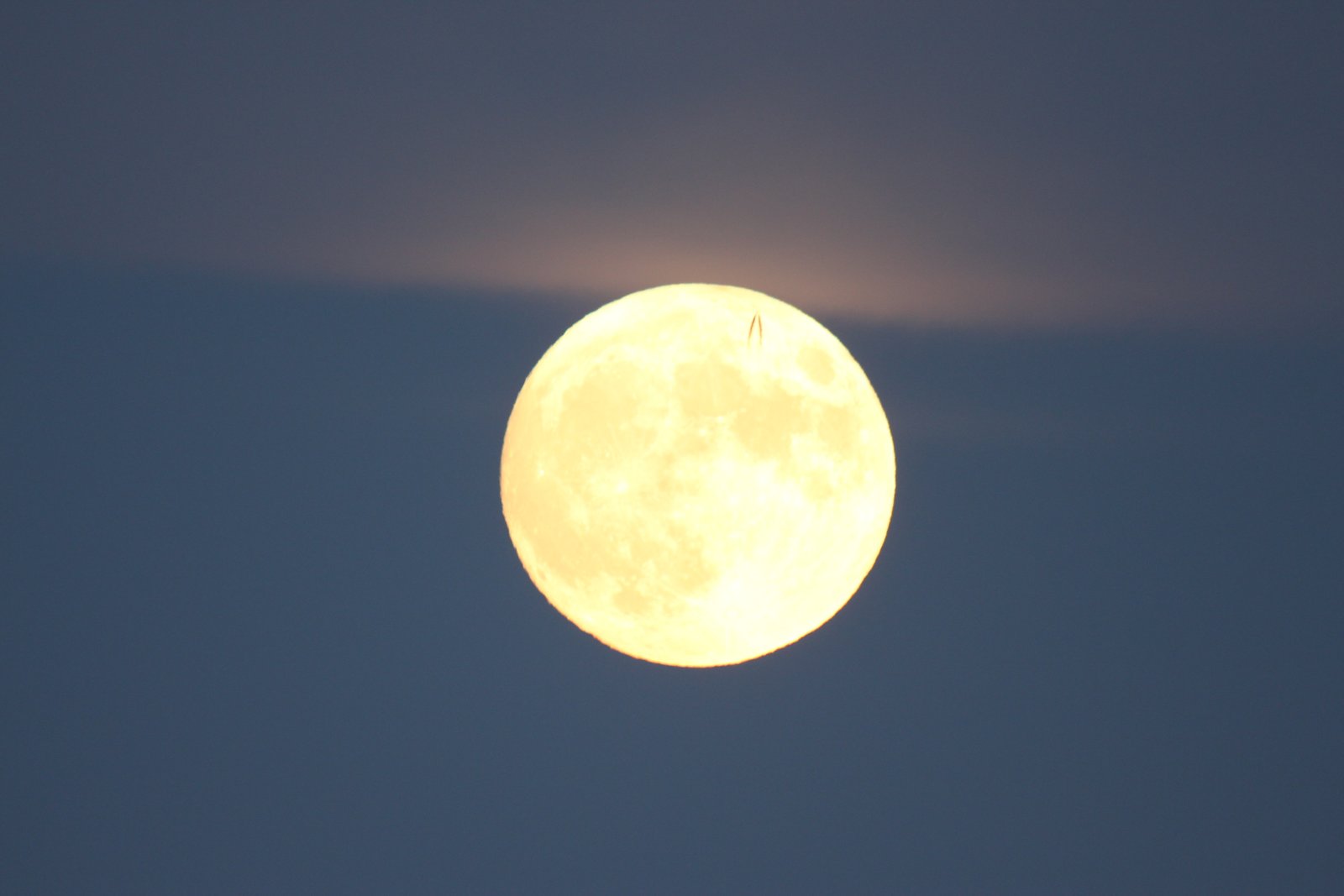 which shows a thin veil of cirrus clouds moving across the moon's top