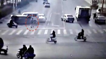 This accident happened in China recently and shows the security cam footage of three cars being uplifted by a mysterious invisible force. I looked closely at the footage. I focused on the first vehicle to rise, then the second and the third. This gave me an order. Why? Because there was a person standing on the side of the road nearest the 1st vehicle. The person was exceptionally tall, about 6'4" and had super human powers. This person had an unusual walking pattern, much like the tall whites (alien) are described to have at Nellis AFB. Also the person is the first to walk past all three of the accidents as if it was just another day...but the walk tells me the person is angry. Its a hard long strut. This person was an an alien...who became impatient with traffic not stopping for the red lights.