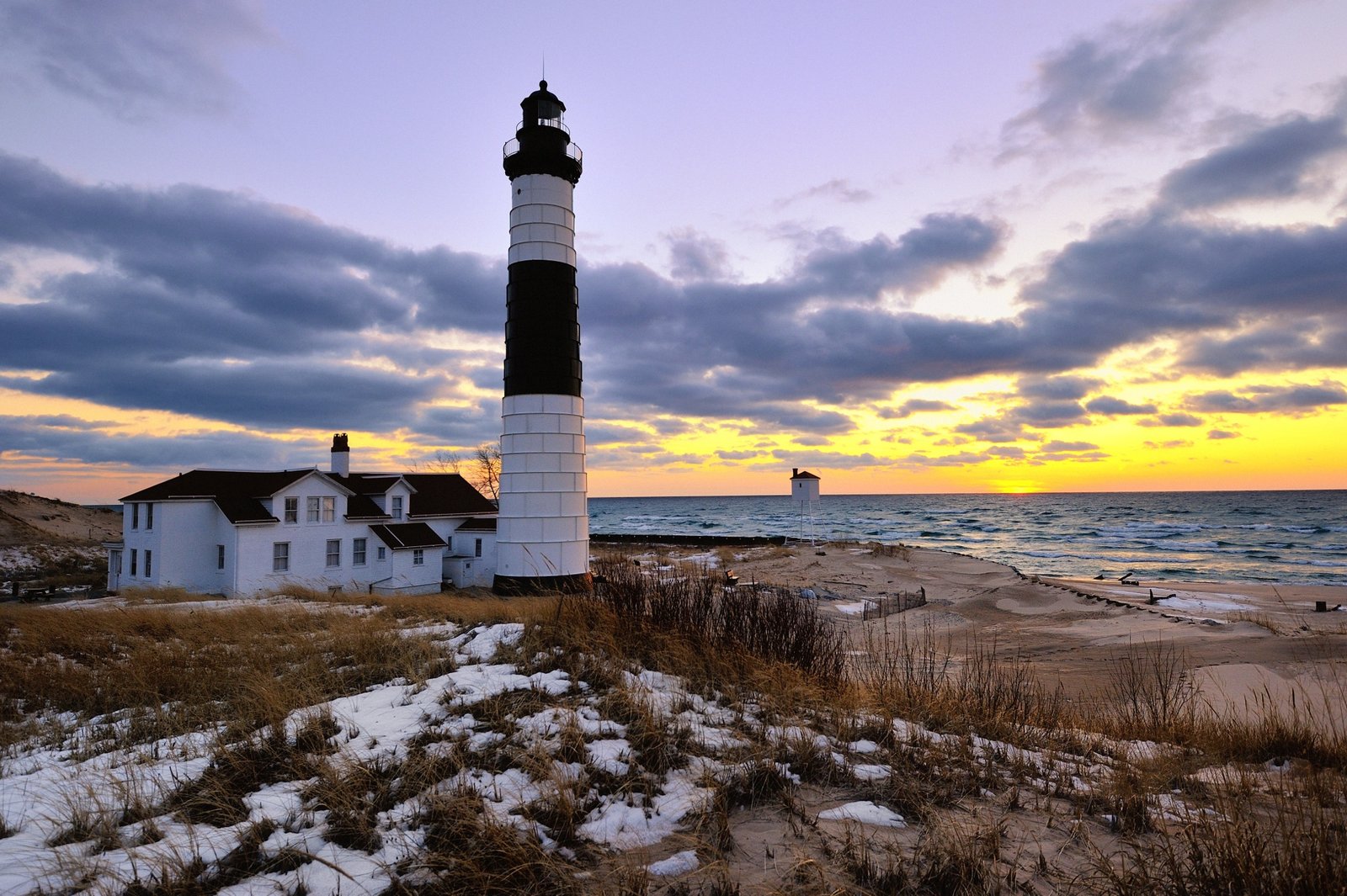 The sun had recently set but the lighthouse wasn't yet cloaked in