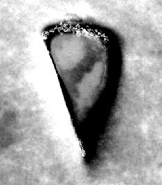 This is what happens when you get too close to Earths moon. This is a giant opening into our moon. On the far left side of it you see a wall that rises several miles. What happened here is that the camera was so close to the moon that the holographic cloak now had glitches. What I mean is that cameras usually take photos according to its shutter speed. This speed can be changed, but todays cameras can take speed of up to 1/1000 sec. Other photos show it gone. So this glitch in their cloak was so fast that the human eye could not even notice it, but technology did, and it recorded it too. So this old Apollo 8 camera probably had a speed of only 1/200 sec or so, but that was enough to record the glitch (true view of this opening) in our moon. Its there, we can see from the detail that this is not a mistake, but its really built into the moons surface. This is excellent proof that the moon is an artificial structure.