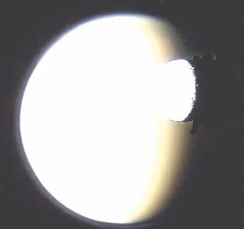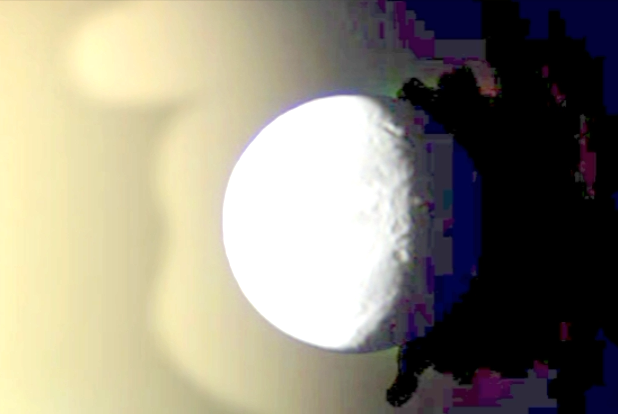 Clearly attached and behind one of the moons is seen a giant craft the size of a death star from Star Wars. This is also what some say the dark side of Earth's moon might look like. Did you ever wonder why Earth's moon never rotates to allow us to see the other side, but instead one side remains in the dark...forever!