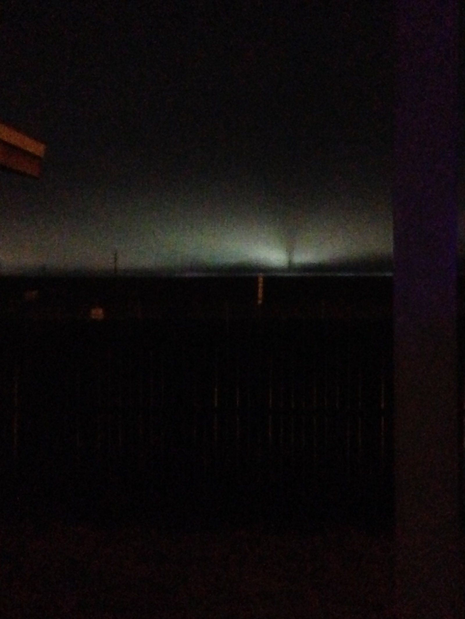 “About 12:15, I went to let my dog out. [I] looked up at the sky above the field of satellite, HAARP and cell phone towers and saw that there was a wall of blue plasma like lightsâ€, the anonymous witness reported. “To the left, the sky looked as if it was sunrise. In the middle of the blue wall was a black cloud like funnelâ€, he continued. Then, he claims he observed “two orbs dancing around the funnelâ€.