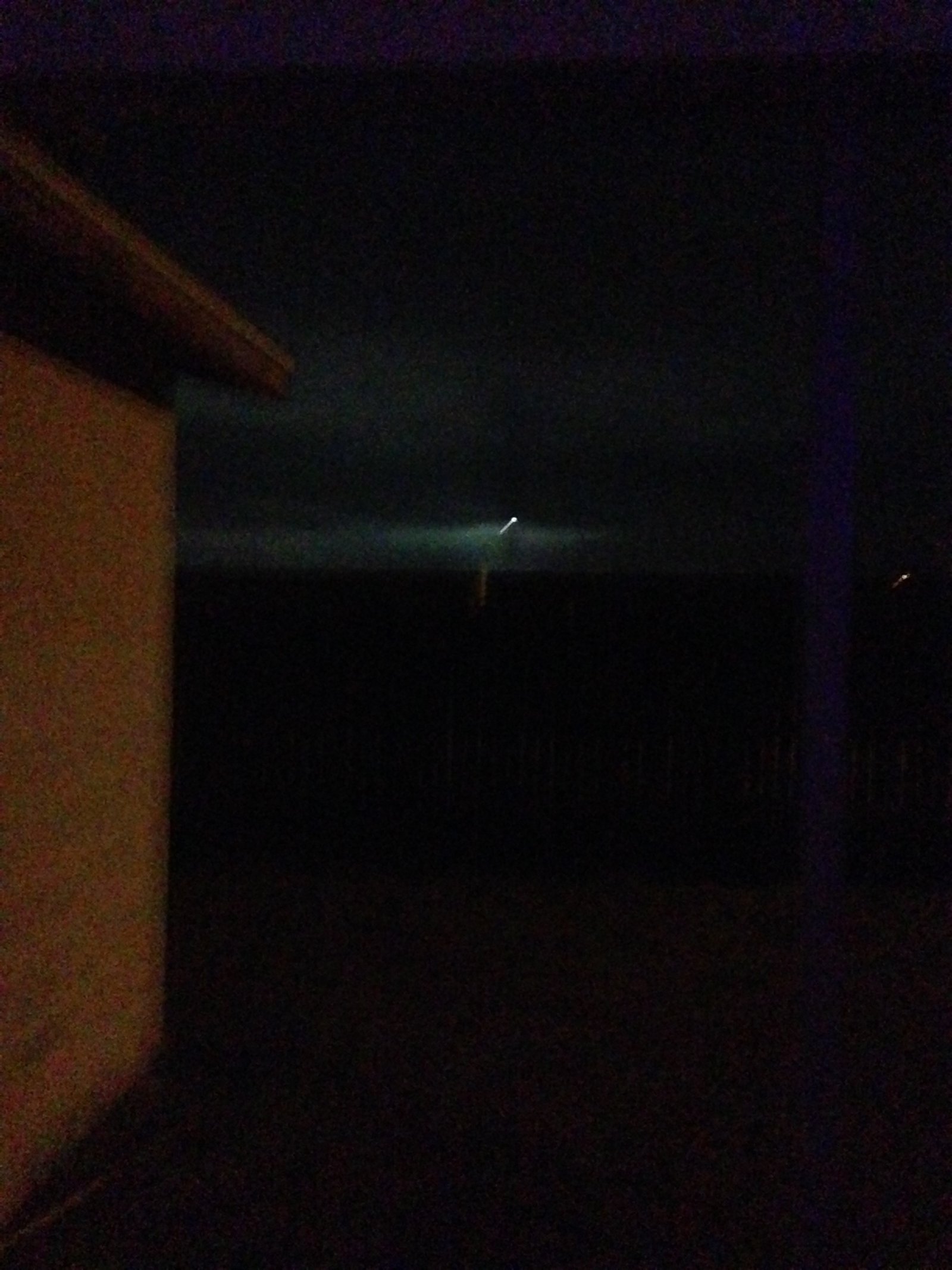 After this, “the tower dissipated and we heard and felt very loud rumblesâ€, he added. “The two orbs then merged and shot up. The wall of blue lights gradually fell just looming over the horizon until sun up around 7 a.m.â€, he expressed.