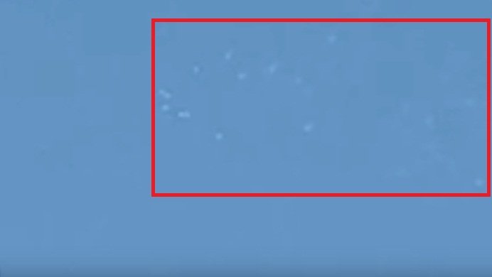 The video contains a couple of clips showing several white, round objects moving across the sky. Immediately after being detected, the objects were attacked by military troops with machine gun shots, but none of them were apparently destroyed.