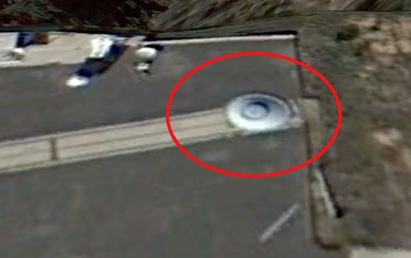 Now, the amazing thing is that if you hit the date bar, you can view photos of the same area in the past, and this disk moves around from place to place. Its in the perfect position where no one would be able to see it since its on a hilltop at the highest point in the city with mountain walls on all sides and a military fence around the facility.