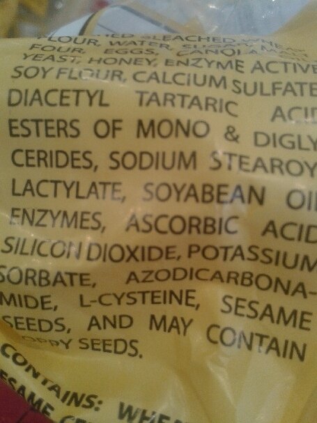 Watch out for other less horrible but crappy ingredients in store bagels like 'sorbitol' or |â€glucose-fructoseâ€. There's no need for those to be in bagels either.