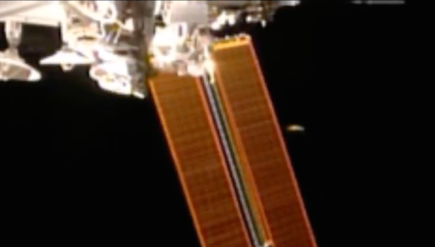 According to a video published on YouTube by UFO hunter Streetcap1, an alleged spacecraft was caught “speeding off into the distance†by one of the ISS’s cameras.