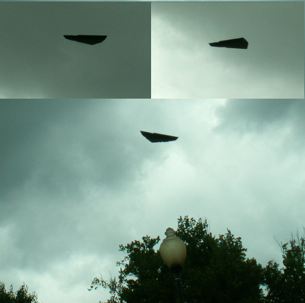Finally, he describes sighting the triangular black UFO again for a short duration of time as it flew near a large aircraft.