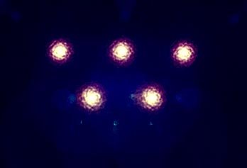 "Next to it on each sides were two others also round but not as big and therefore not as powerful. They each emitted their own beam of light powerful enough to be radiating above, below and on each side of this row of lights."