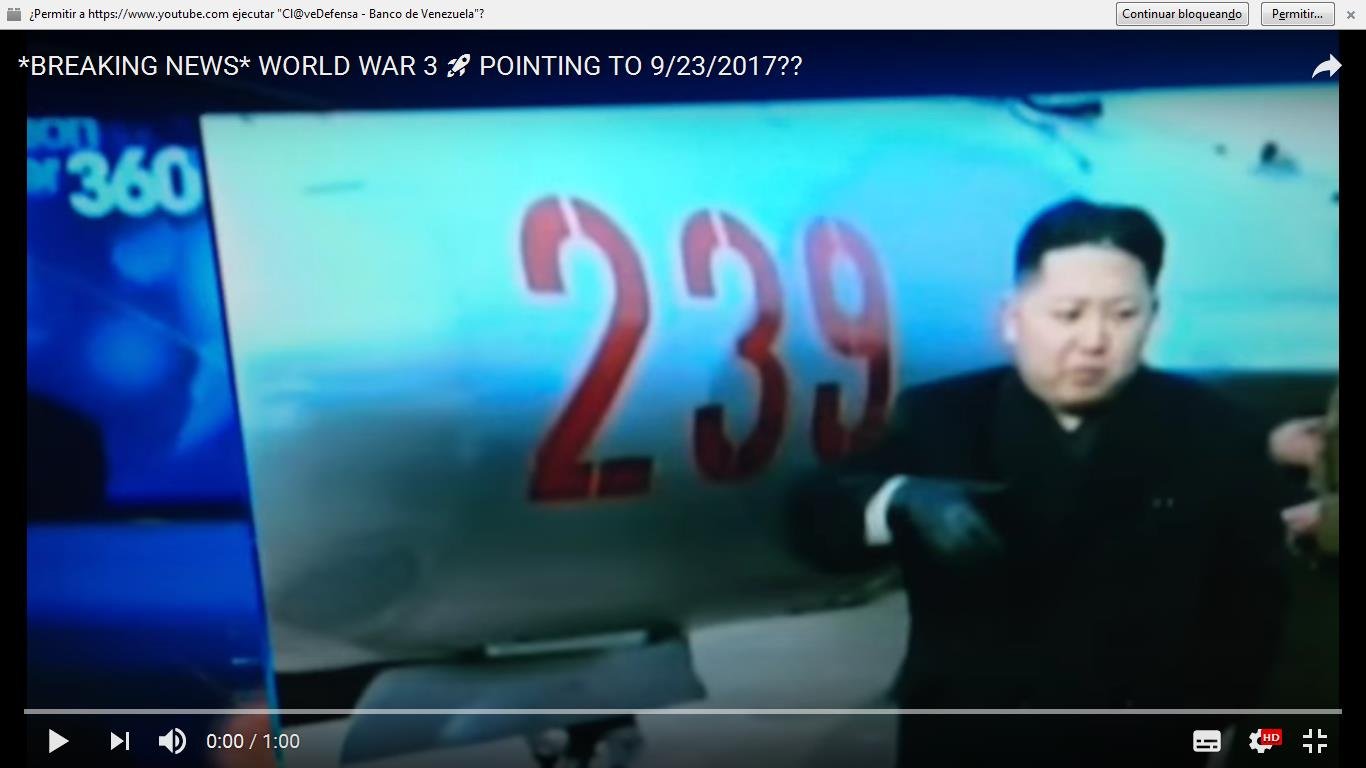 “World War III is about to pop up, guysâ€, he expressed. “Just look at this missile: 239. Like I said, 23 September 2017, guys. Is this the year? We only have a month or soâ€, he added.