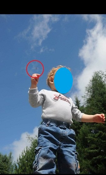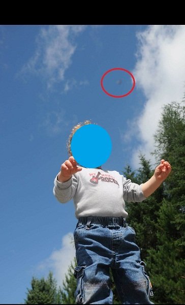 The New Brunswick resident also explained that the anomaly appeared and disappeared intermittently. “The said object was in two consecutive frames and absent in the third one. Then, it reappears in the fifth, frame which is the last picture we have of itâ€, he said. “The first picture just shows my son, the second picture shows something just above his left hand, the third picture shows the object above my son’s left shoulder heading into the clouds, the fourth picture is of my son again without the object, but in the fifth and final frame the object reappears again over my son’s left shoulder, this time at a higher elevation than when it was last seenâ€, the witness expressed.