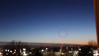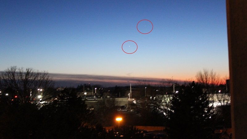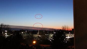 “I called my sister and while I had her on the phone describing these bizarre black lines in the sky, suddenly to the west what looked like a very bright star just appeared (the sky was clear) and it was pulsing white, red/orange and green, and getting brighter. Then, four smaller orange/red pulsing lights appeared at the same time around this larger pulsing thingâ€, the witness explained. “However, suddenly all five objects disappeared; it went dark. They didn't move around at all while they were visibleâ€, he expressed.