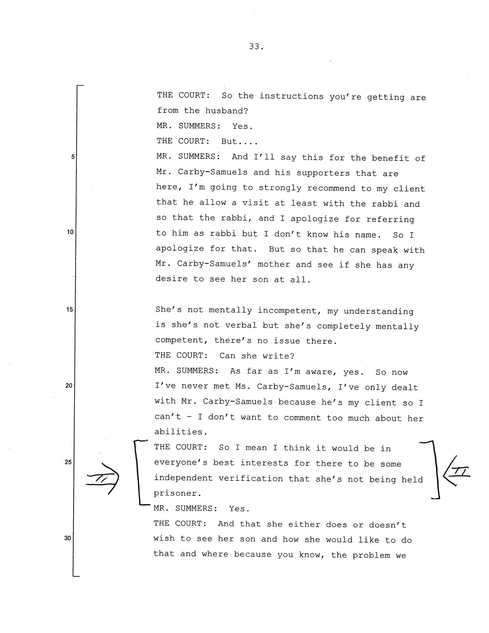 However, Raymond`s father had a plan in mind, and that was to spread the lie that Raymond ``suffers from mental illness`` which he used to get the police to remove him from looking after his Mother anymore, and since that time John Summers has spread the lie that ``Raymond`s parents`` don’t want to see him anymore. On 24 March 2017, Justice Macloed asked for what he described as `independent verification`` of Raymond`s Mother wishes to ensure that she `has not being held prisoner`. However, this endorsement was blocked under the auspices of John Summers who has continued to spread the apparent fraudulent representation concerning the wishes of Raymond`s Mother.
