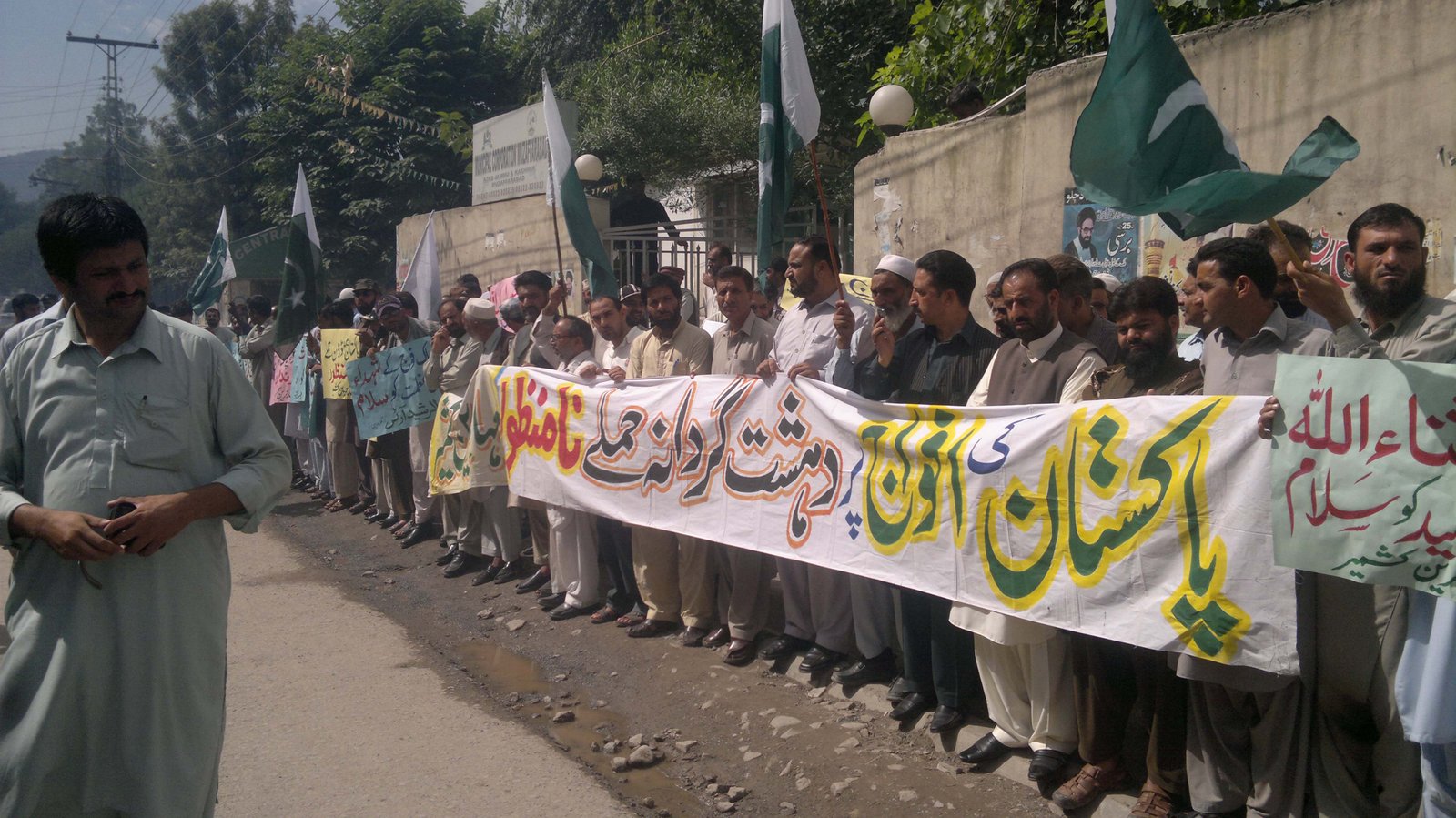 Photo [Left]: Muzaffarabad Kashmiris staging protest against the killing of senior military officers