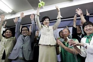 Koike, 64, had previously served as defense minister, Japan’s first woman in that post. But she ran in the Tokyo election without the official backing of the ruling pro-US, pro-business Liberal Democratic Party. During her campaign, she wore green to symbolize her freshness, and asked her supporters to also wear the color and wave green fans and banners.