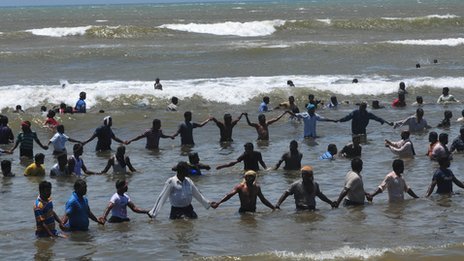 Anti-people Indo-Tamilnadu duo jointly killed already 2 innocent fishermen, Antony and Christ Sahayam. While Antory was murdered on land, Sahayam was forced to jump on to rock, killing himself. A 38-year-old man has been hospitalised with head injuries after he fell down in panic while a Coast Guard aircraft flew low along the coast near Idinthakarai in one of its sorties. Taking their protest against the Kudankulam power plant to the sea route, hundreds of people today stood in the waters forming a human chain to demand halting of preparations for fuel loading into the reactor.