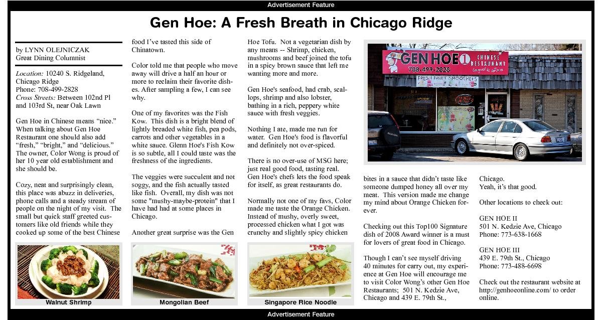 Are you a restaurant owner who is frustrated about waiting for reviewers to write about your restaurant toward helping to boost your marketing objectives? Thanks to AdvertorialAgency.com, you don’t have to wait anymore. Just contact AdvertorialAgency.com if your restaurant is seeking to get reviewed across Canada, or internationally. This includes the U.S. AdvertorialAgency.com will arrange for one of their professional writers to review your restaurant. Contact AdvertorialAgency.com or The Canadian for more info.