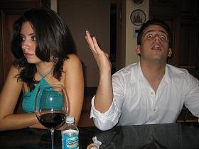 For example, if you notice a couple arguing and she spills a drink on him, you can go up to a woman nearby and joke about how great a couple they are together. Say something like, "wow, what a close relationship they have."