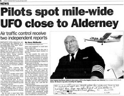Surprisingly, Jersey radar equipment did not pick up the object, although an air traffic controller said he had received simultaneous reports from the Aurigny and Blue Islands pilots.