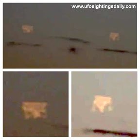 These two strange UFOs that are shaped more like a cube than anything else were seen over Russia this week during sunset. Sunset is the time when an UFOs cloak is most vulnerable because the light is being bent in an odd way, more than 180 degrees from the sun to the UFO making the UFO reveal itself for a few minutes.