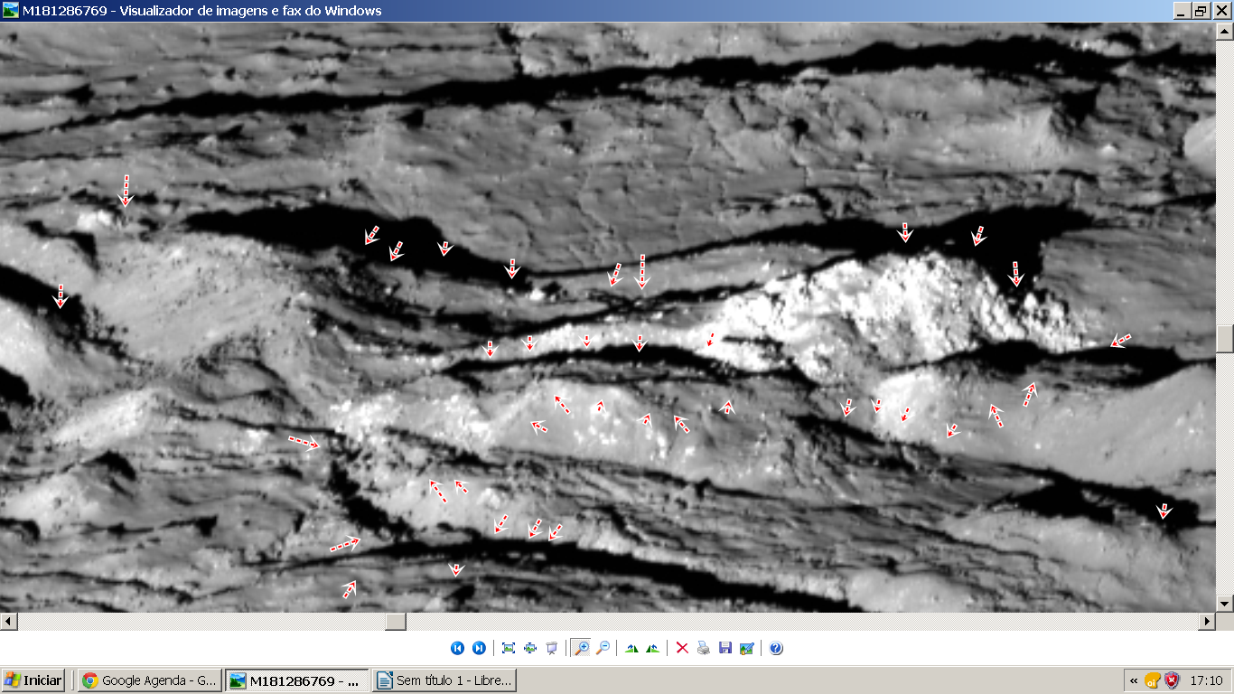 Images obtained (attached) from the analysis of the photo http://wms.lroc.asu.edu/lroc_browse/view/M181286769 -