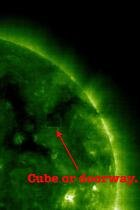 I was looking at my app on my iPhone and came across this cube UFO or doorway within the sun. I use the official NASA SOHO app as to get it directly from an official source. Within todays sun photos was the cube -- black this time and it looks like it is submerged in the sun.