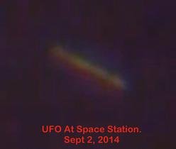 (Xcheaters-Reviews.com) -- Are aliens and elites pursuing collaborations in space? Scott Waring who edits UFO Sightings Daily reports that on 2 September 2014 a long cylindrical UFO appeared around the International Space Station.